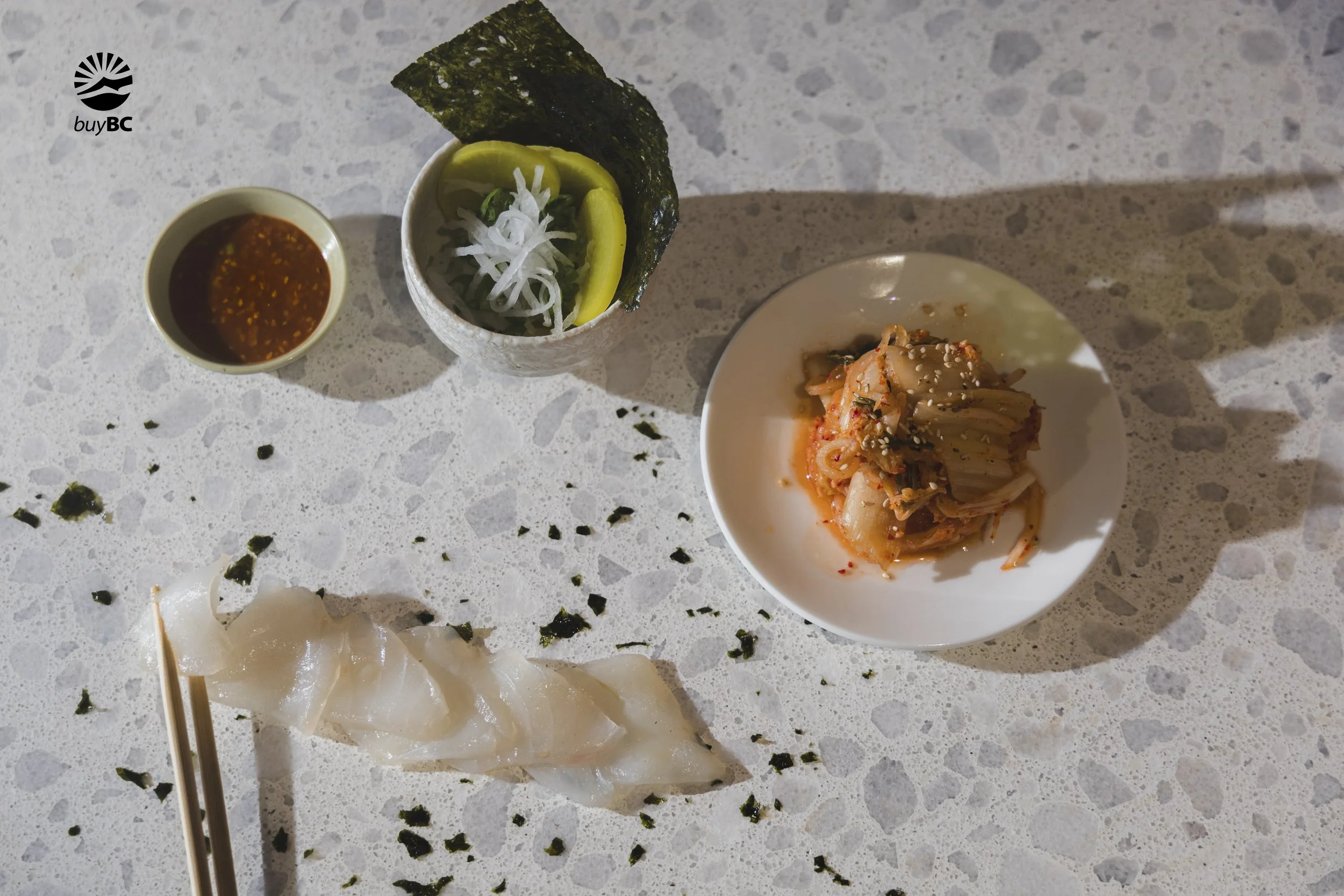 In the winter when fresh halibut is not available, I like to slightly cure and enjoy this local fish with the warming effect of Ssamjang , my favourite Korean dipping sauce